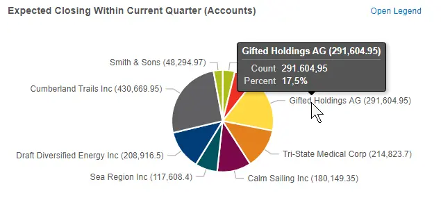 - Übersicht über den akkumulierten Verkaufschancen Betrag pro Account (Firma) (Pie Chart)
