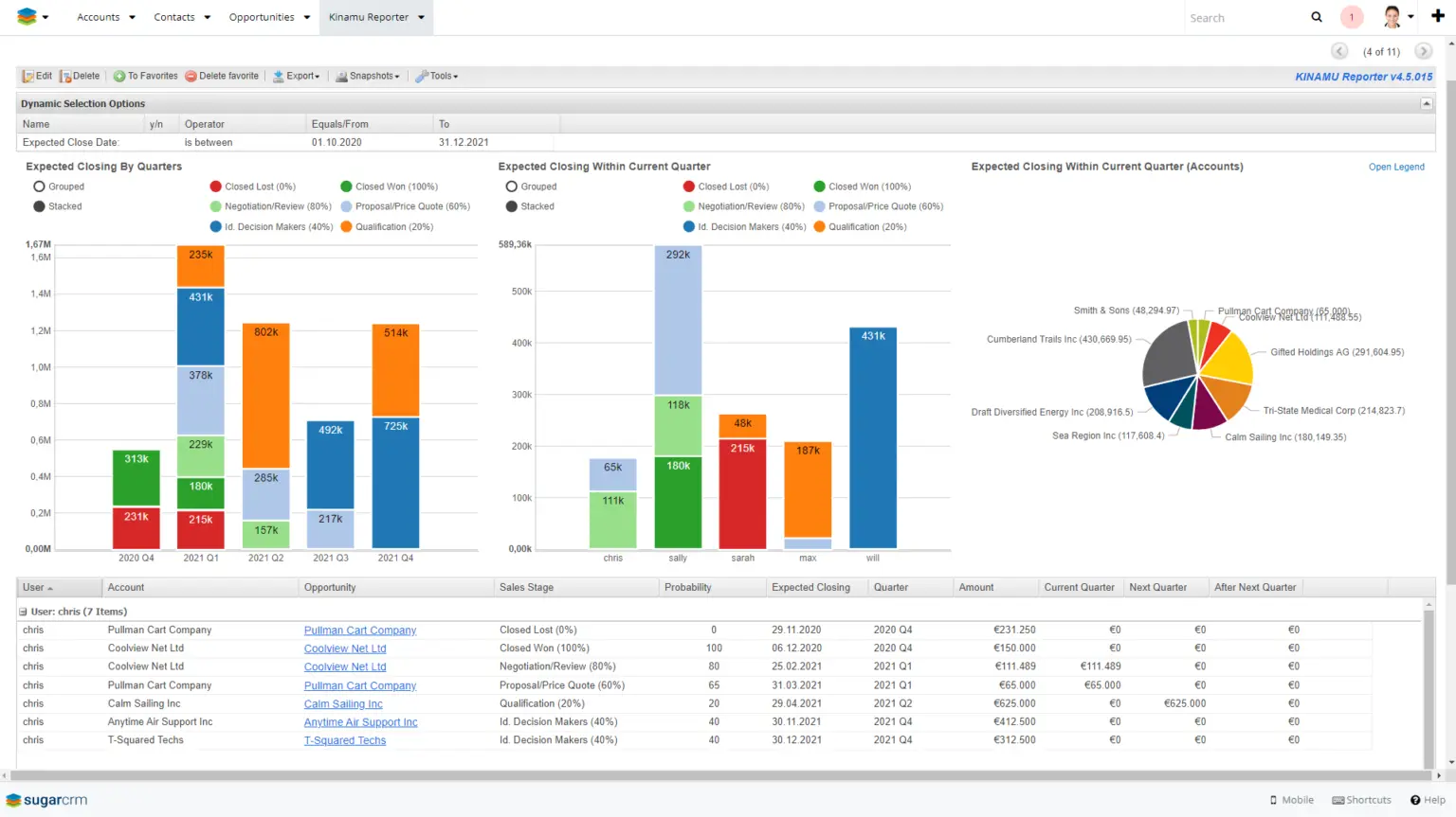 KINAMU Reporter Bericht zur Salespipeline Auswertung