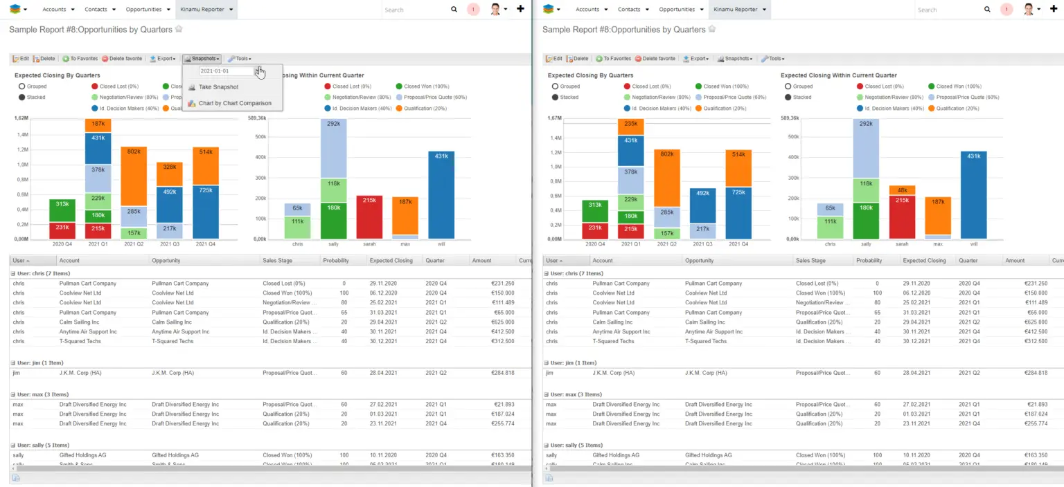 In unserem heutigem Blogbeitrag zeigen wir Ihnen wie Sie mit dem KINAMU Report im SugarCRM Snapshots erstellen um Trends innerhalb der Salespipeline zu erkennen. Wir gehen auch auf die Trendanalyse ein und vergleichen dabei das Jahr 2020 mit dem Jahr 2021.