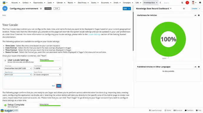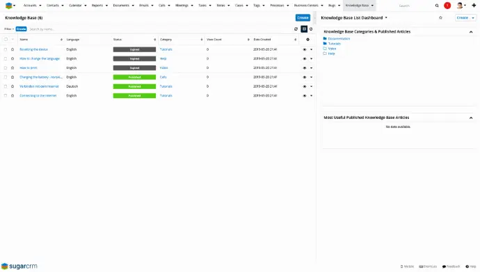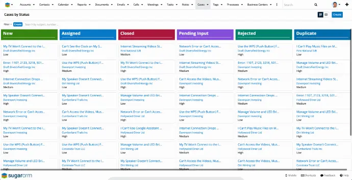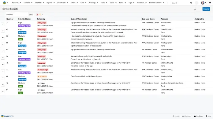 - SugarBPM-Automatisierung – Nutzt einsatzbereite Workflows und SugarBPM sofort, um die Arbeit intelligent zu priorisieren; das heißt Fälle weiterzuleiten, neu zuzuweisen und zu eskalieren, Folgetermine zu berechnen und Benachrichtigungen zu senden