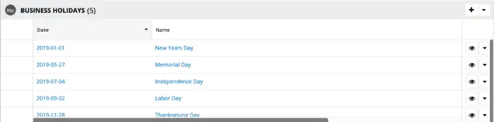 Übersicht von Feiertagen/Urlaub für das Support Center
